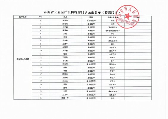 海南省公立醫(yī)療機(jī)構(gòu)特需門診醫(yī)生名單(特需門診)東方人民醫(yī)院—附件2海南省公立醫(yī)療機(jī)構(gòu)特需門診醫(yī)生名單(2024.10.17).pdf ...2024-10-28